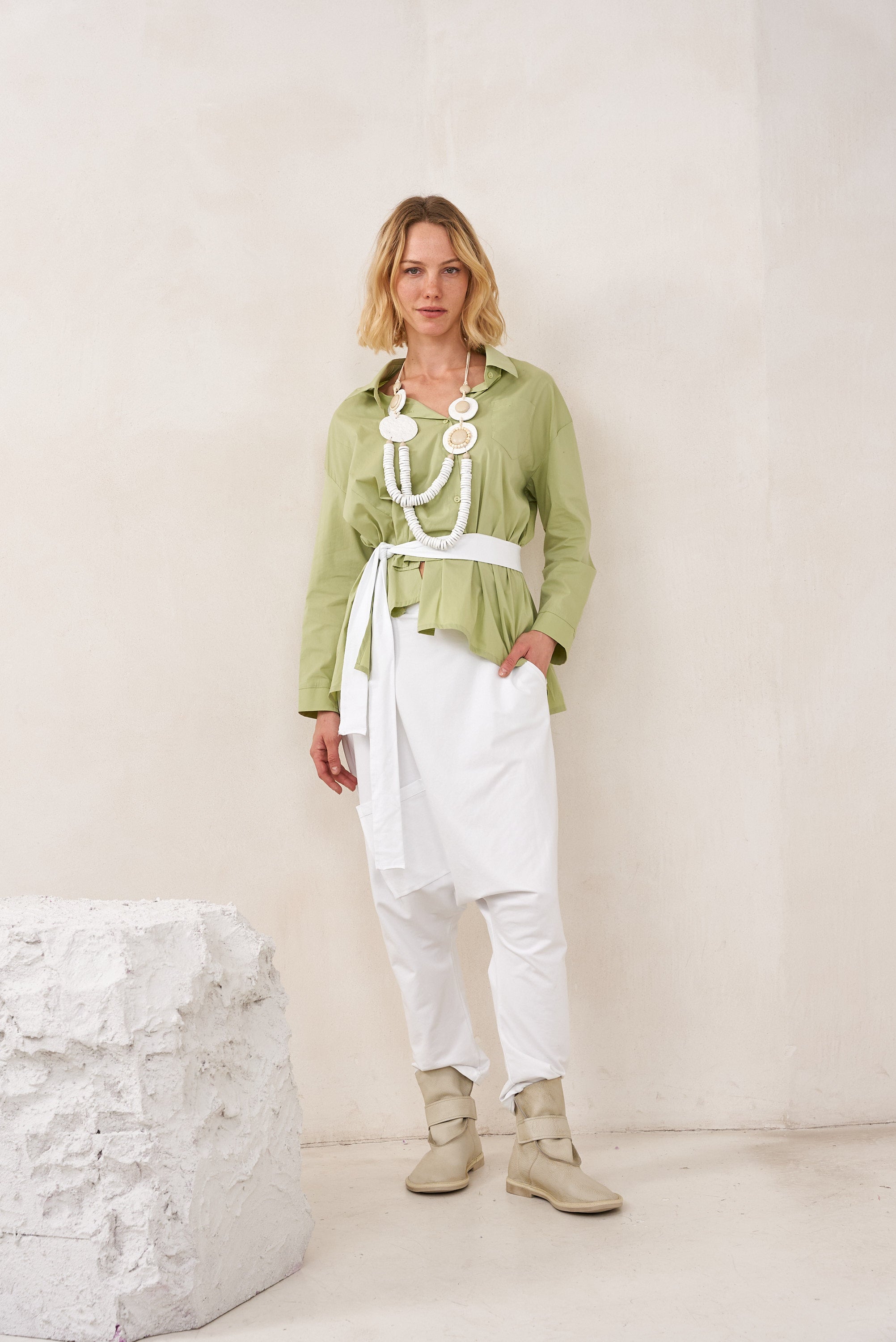 שרשרת נייר ממוחזר חרוזים שטוחים לבן