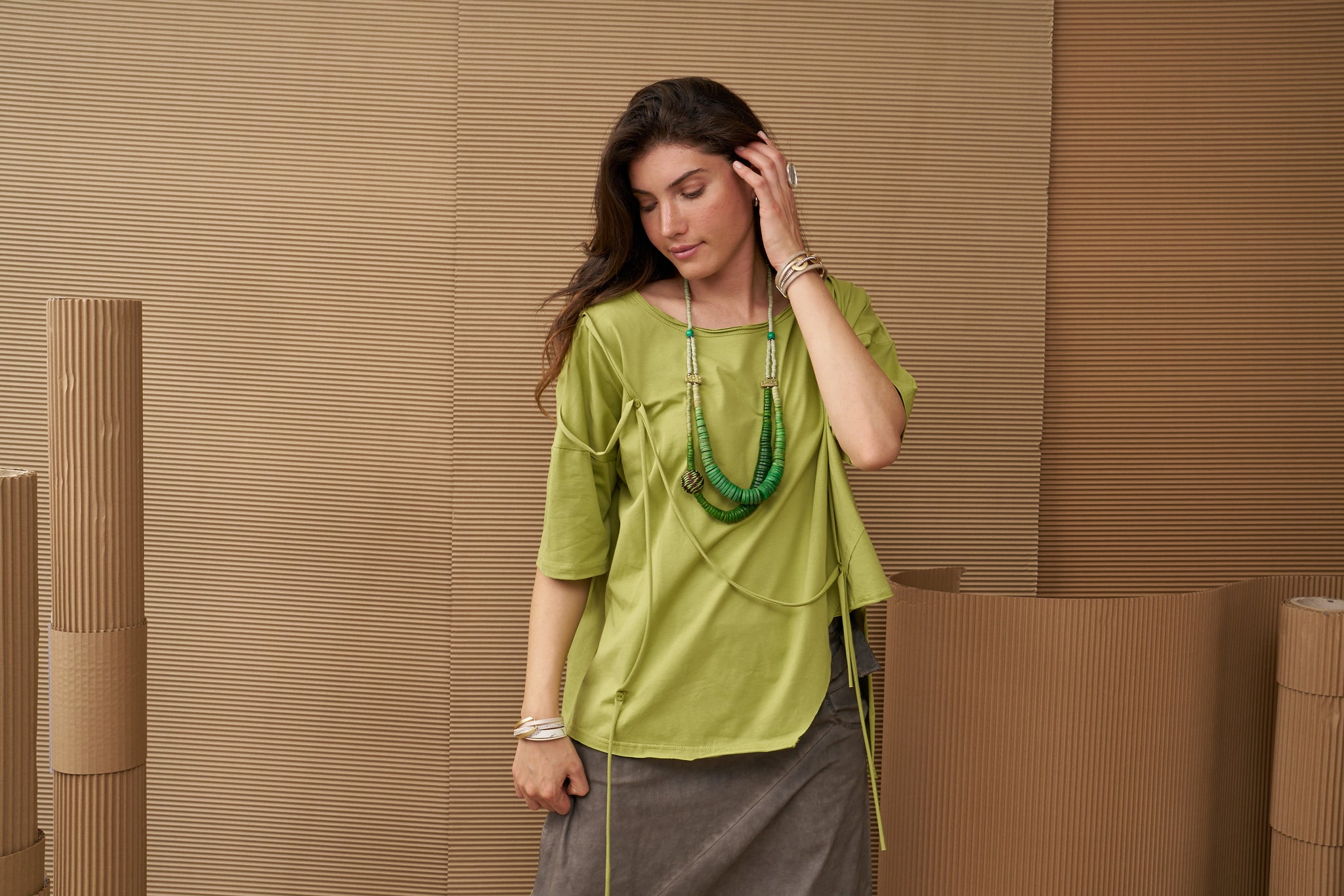 שרשרת דיסקיות קוקוס וחרוז מלופף ירוק