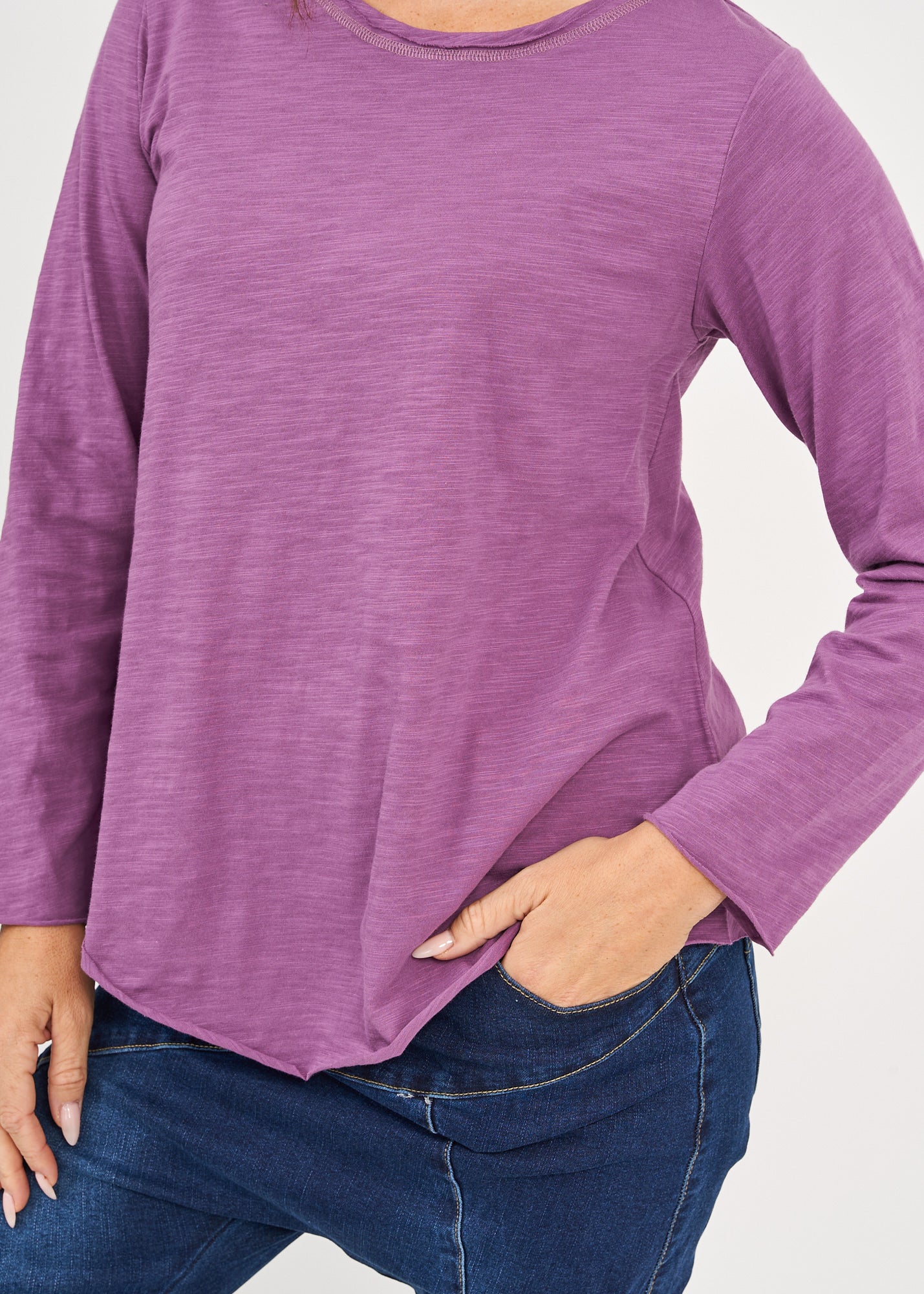 Фиолетовая футболка с длинными рукавами и треугольным концом