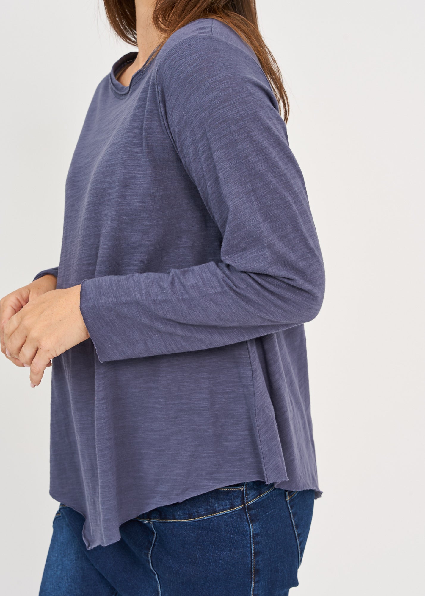 Базовая рубашка с длинными рукавами и круглым вырезом кроя А из 100% хлопка.