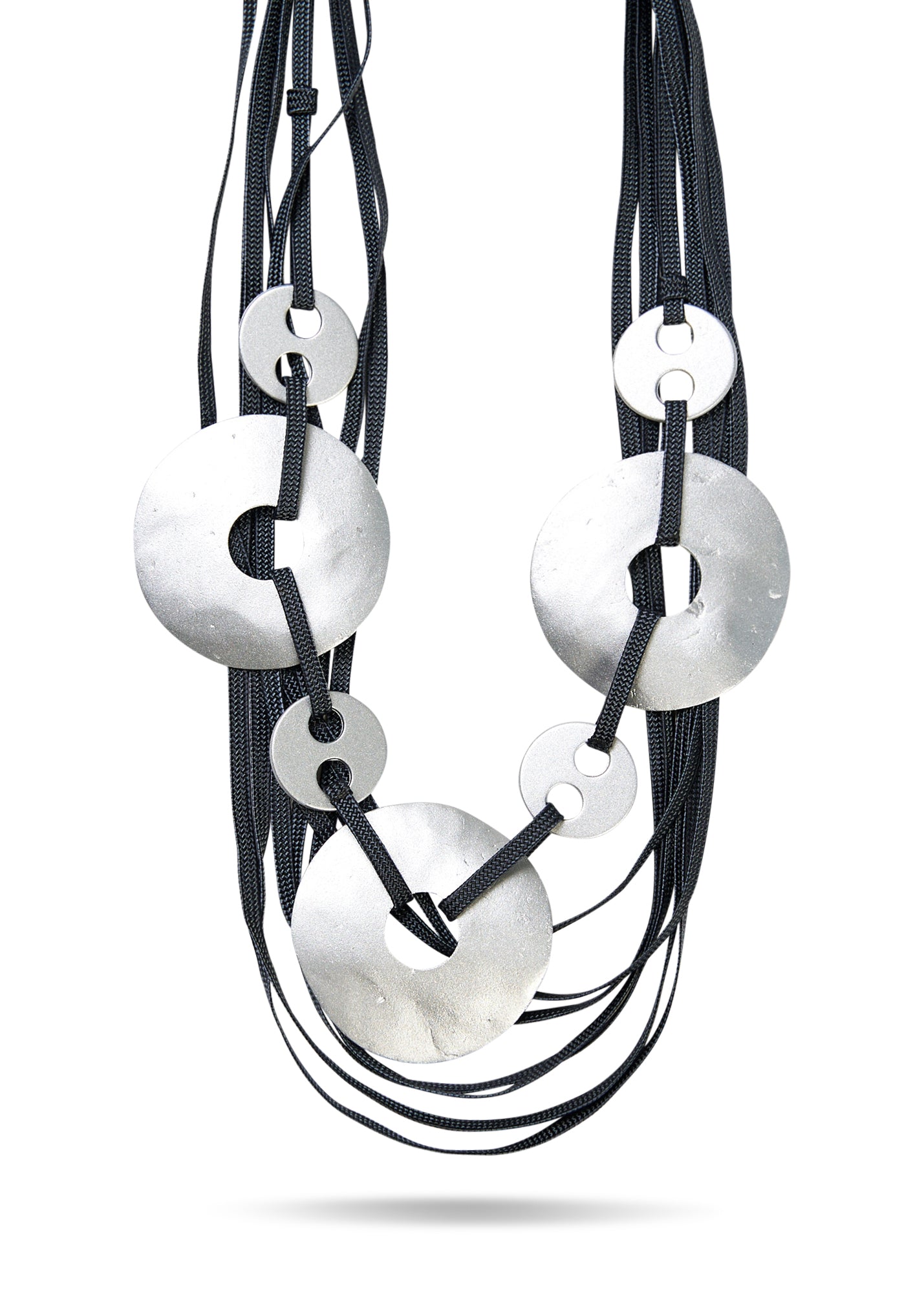 Колье из шелковых нитей с комбинацией серебряных кругов
