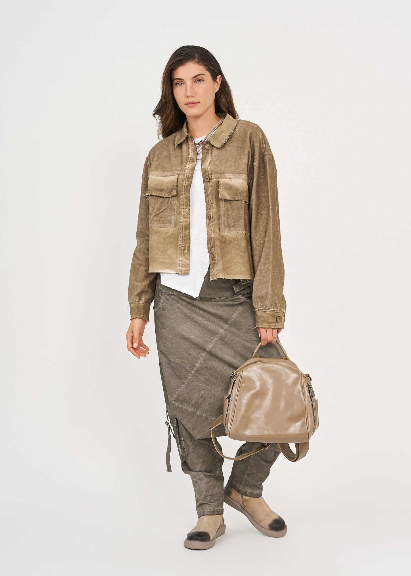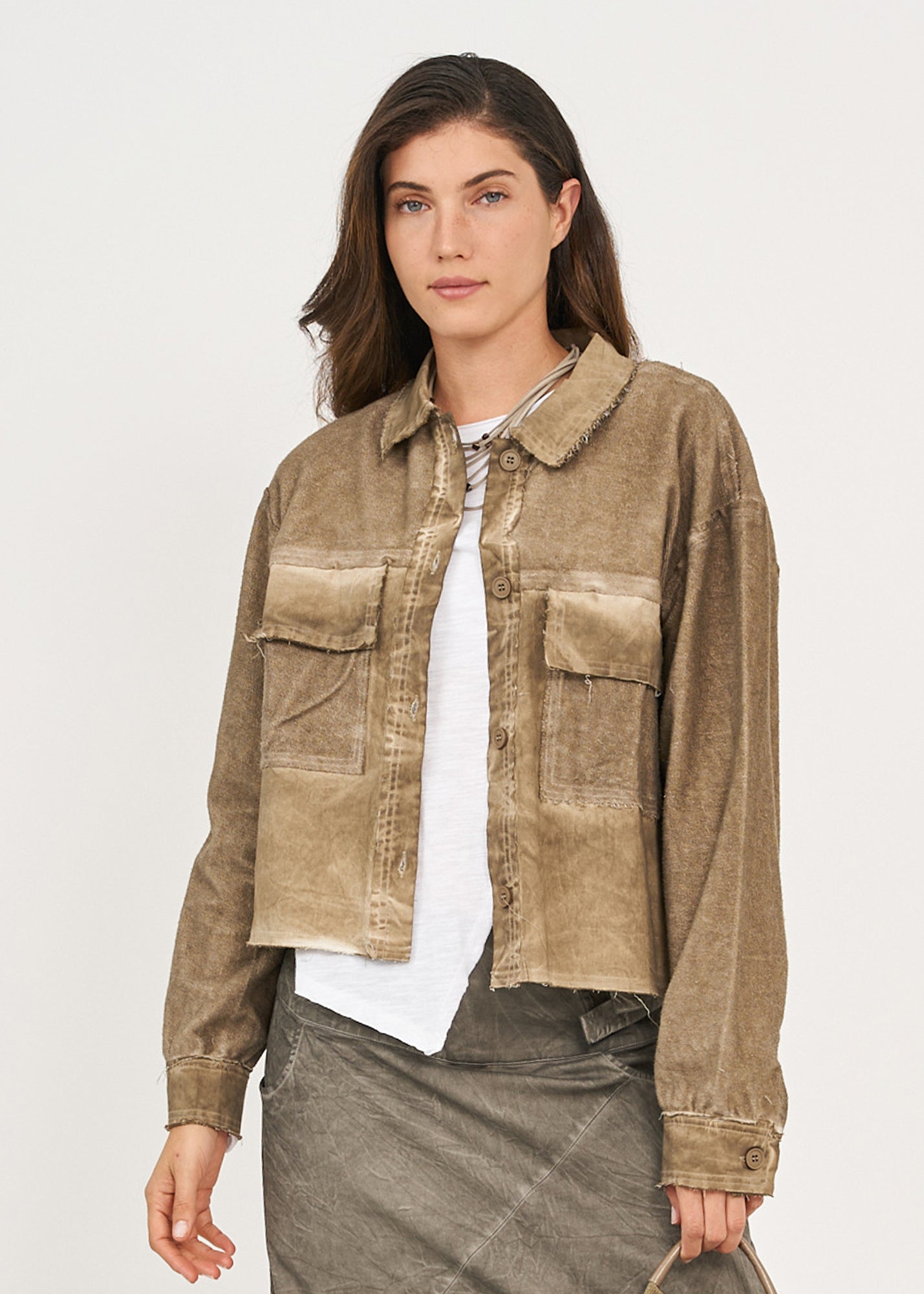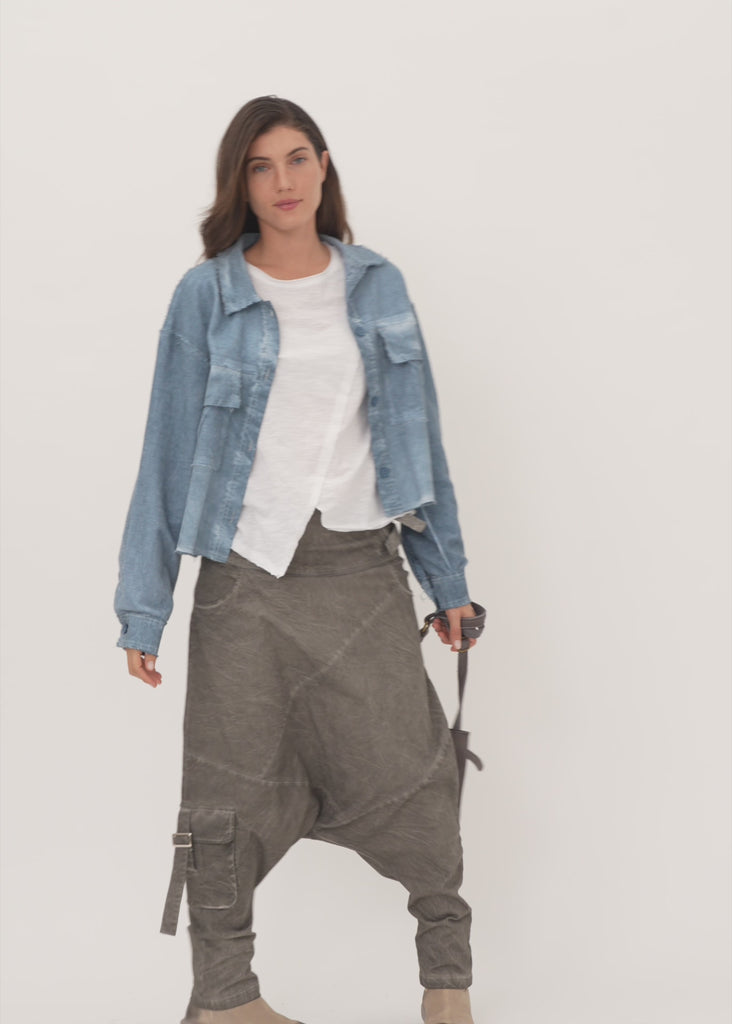 עשוי מבד כותנה איכותי שעבר תהליך צביעת ווש מיוחדת המעניקה לו מרקם עשיר, תחושה רכה ונעימה על הגוף, ומראה וינטג' ומושך. מושלם ללבישה יומיומית וליצירת לוק שכבות ליציאה עם חברות.