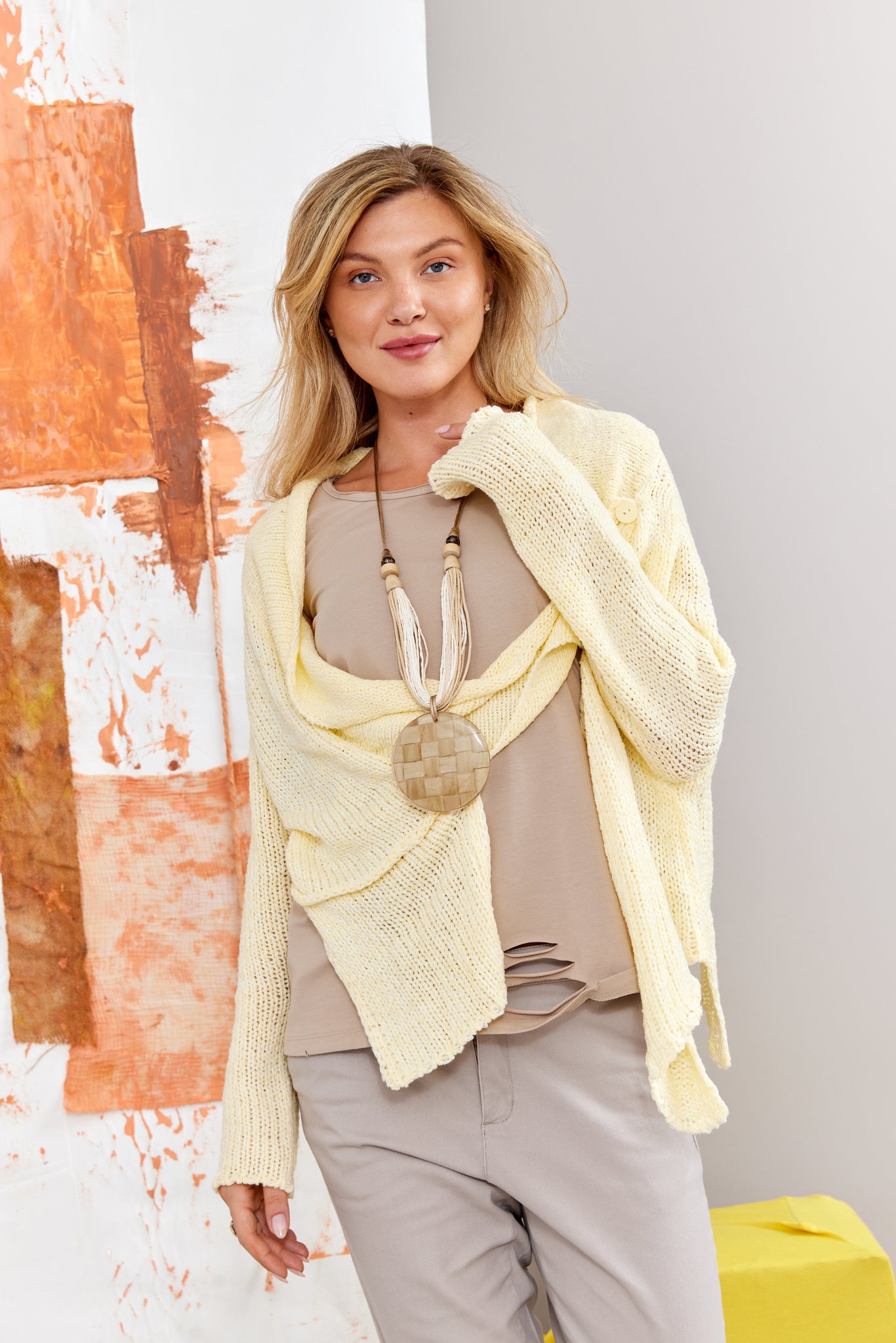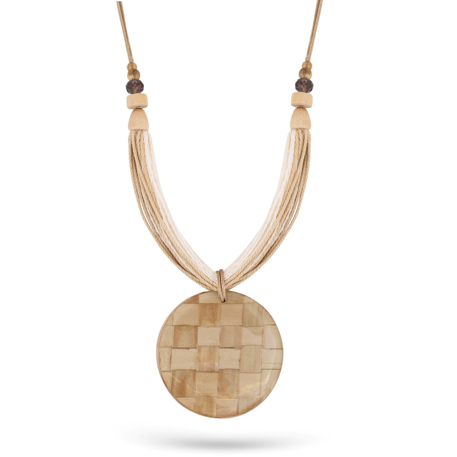 Колье ручной работы из соломенных рядов и круга из смолы с бежевыми квадратами