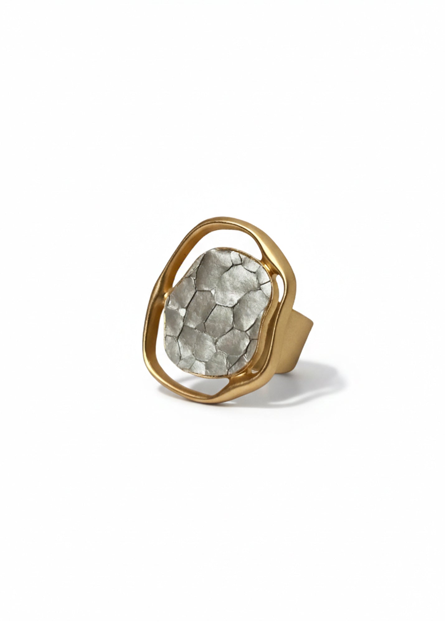 טבעת אלמנט אסימטרי בשילוב עור כסף