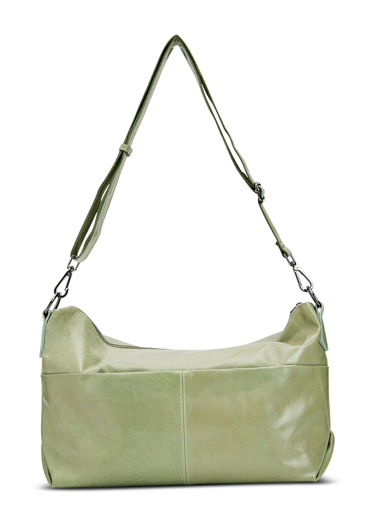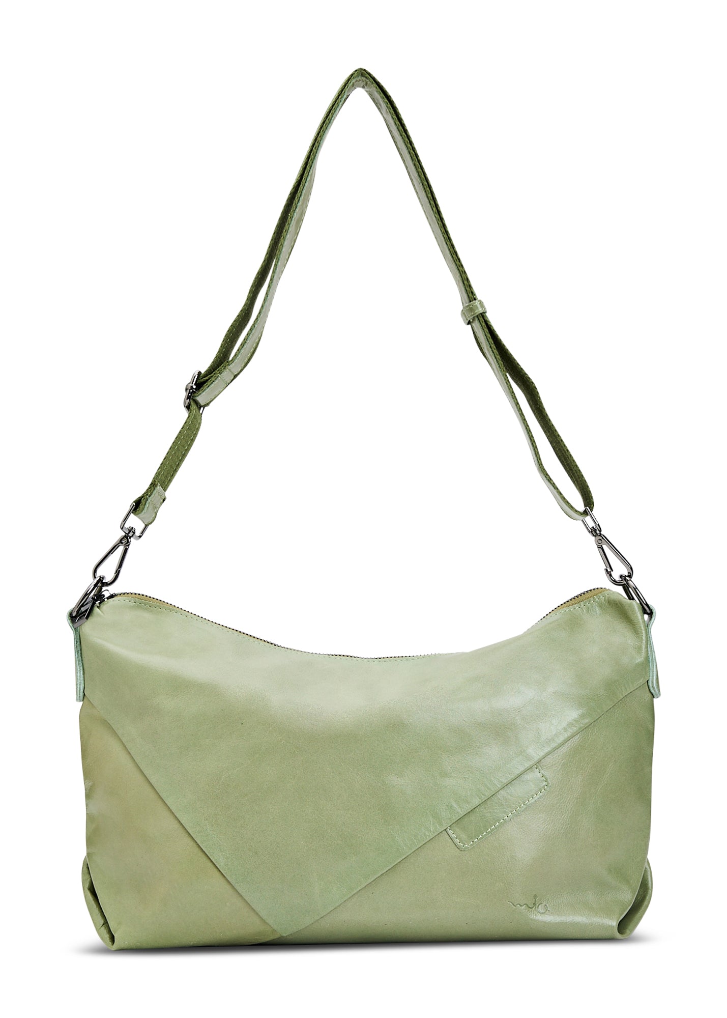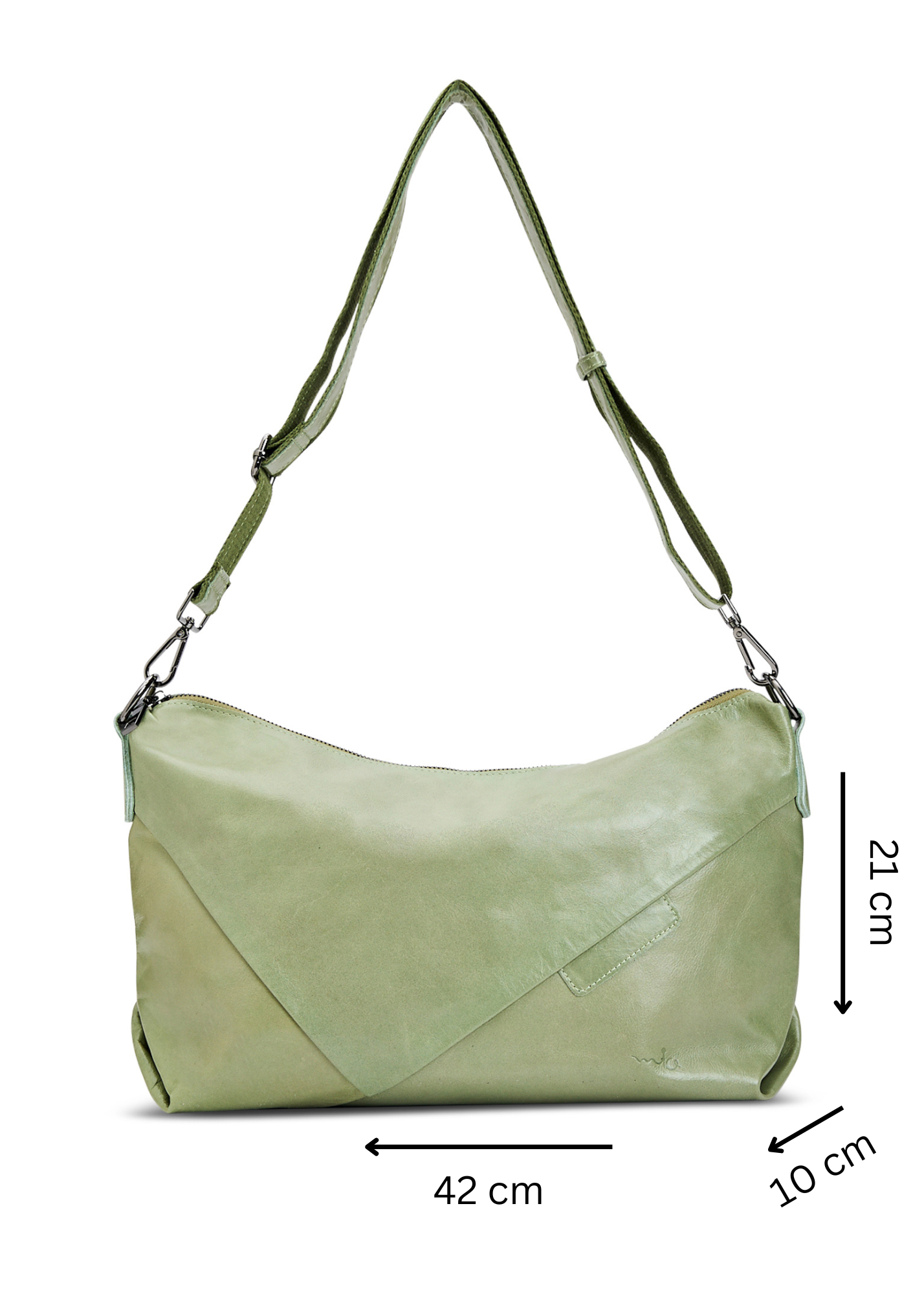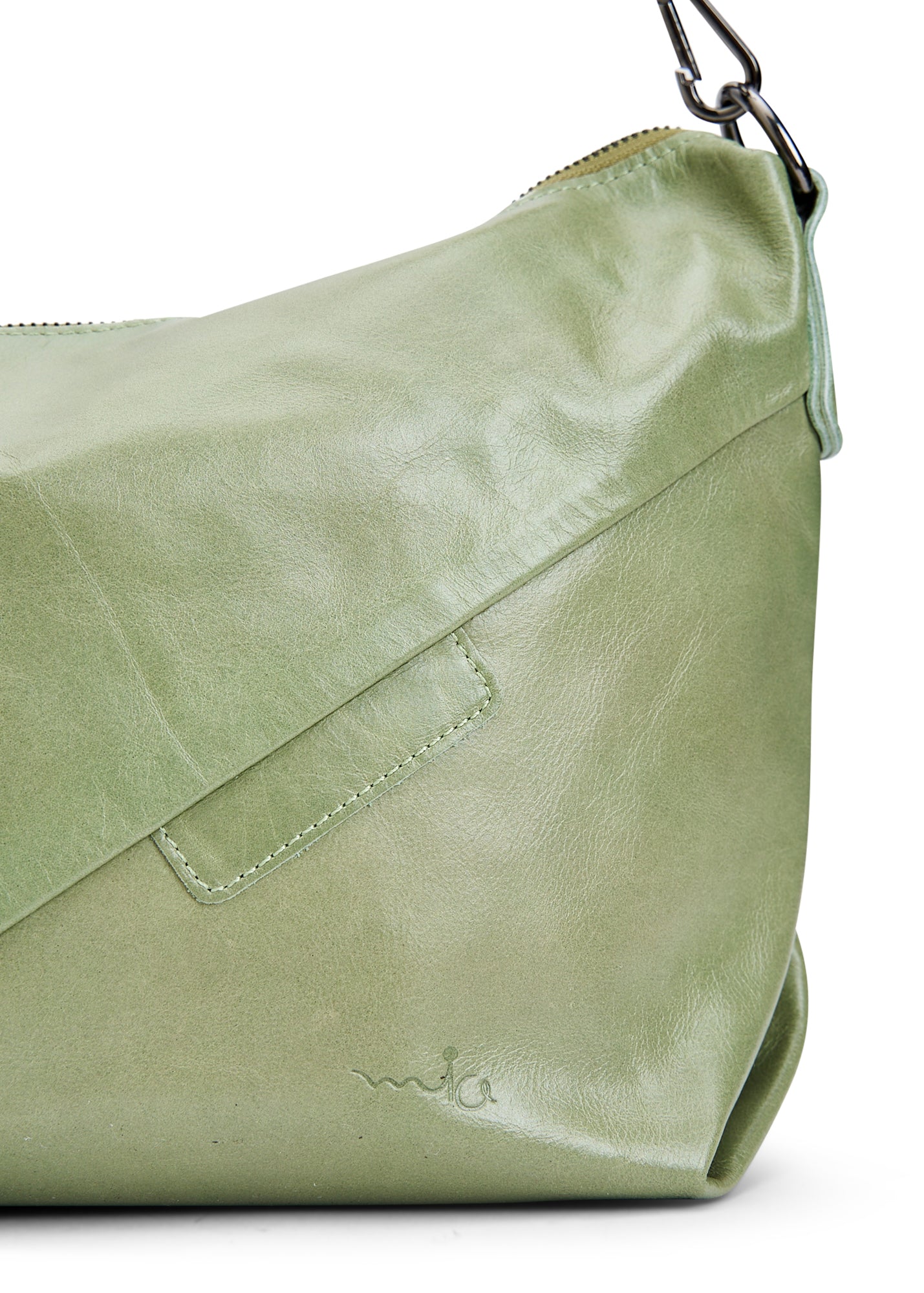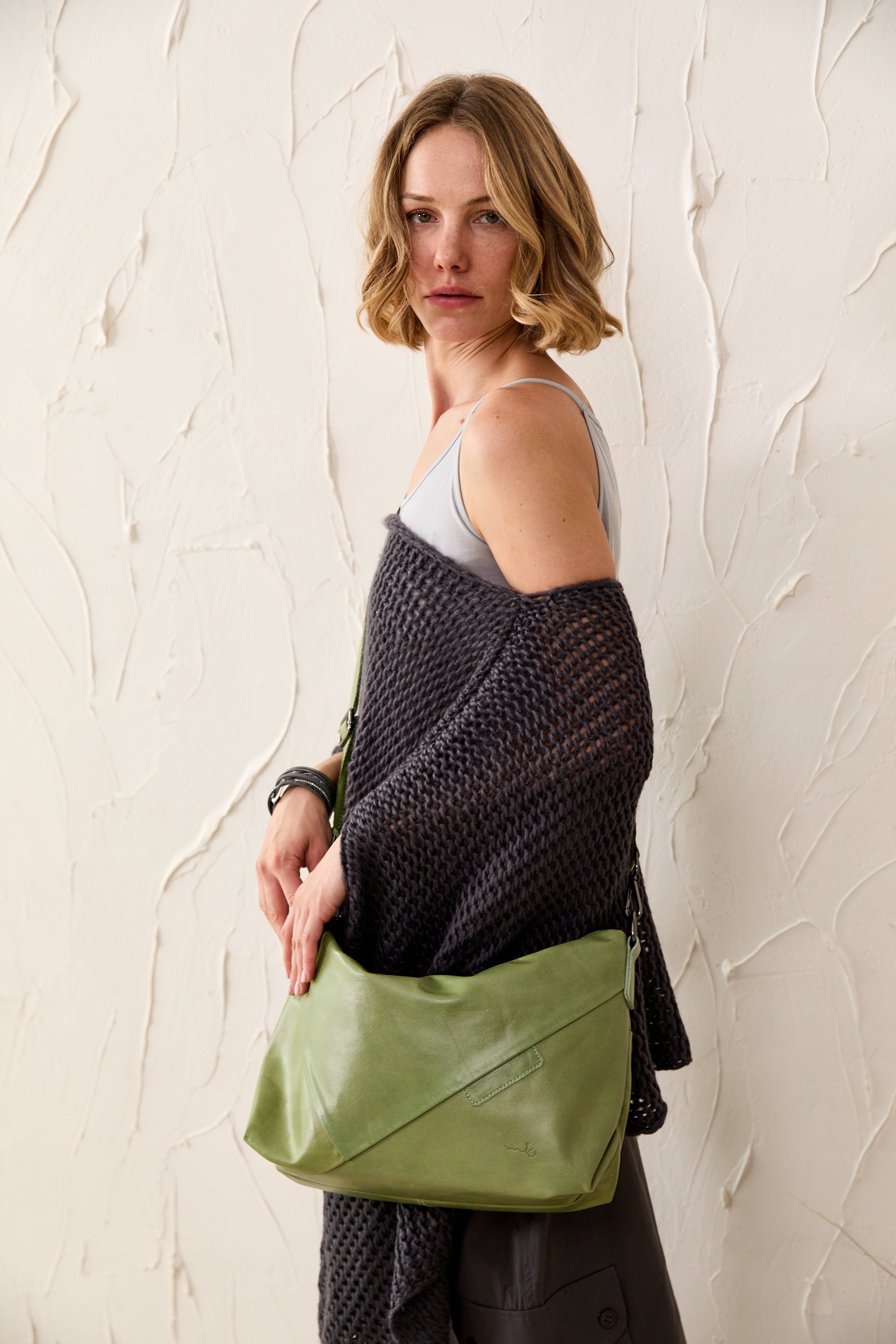 Зеленая кожаная боковая сумка треугольного выреза среднего размера